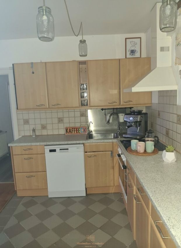 Die Wohnung ist mit einer Einbauküche, einer Gasheizung die 2020 erneuert wurde, zwei Pkw-Stellplätzen sowie einem Bad mit Dusche und Fenster ausgestattet. Die bestens ausgerichteten Fenster sorgen für viel Tageslicht, der ansprechende Holzboden in den Wohnräumen vermittelt eine warme Wohnatmosphäre.