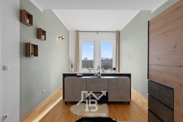 Diese hochwertig ausgestattete Wohnung bietet ein Wohngefühl, das jeden Tag zu etwas Besonderem macht. Die großzügigen Fensterfronten öffnen den Raum und holen die Donau spektakulär ins Zuhause – ein Panorama, das Sie sowohl vom gemütlichen Bett aus als auch vom eleganten Wohnbereich genießen können.