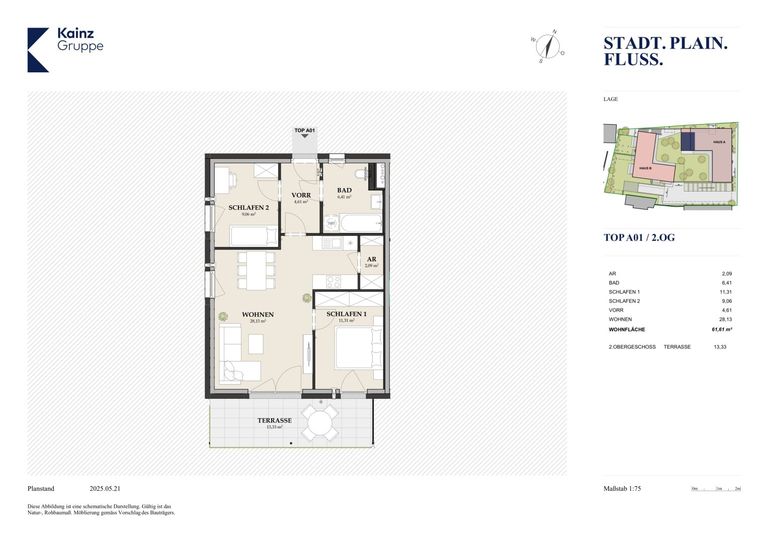 Die Mozartstadt wird um ein spannendes Wohnobjekt reicher: In der Plainstraße, am Josef-Mayburger-Kai entsteht das STADT. PLAIN. FLUSS. Ein Lebensraum für Menschen, die (noch) mehr vom Stadtleben wollen. 32 Wohnungen, ein Penthouse, zwei Häuser – unten durch einen Supermarkt, oben durch einen gemeinsamen Dachgarten verbunden. In Salzburgs vielseitigem Norden, mit idealer Anbindung, der Salzach und all den Vorzügen des Stadtlebens in der direkten Umgebung. Für ein modernes, stadtnahes und gleichzeitig herrlich grünes Leben in Salzburg.