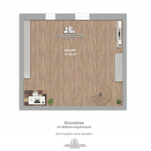 Wichtiger Hinweis: Die abgebildete Wendeltreppe entstammt der Planungsvisualisierung und wird erst aufgebaut / fertiggestellt - Abweichungen möglich!