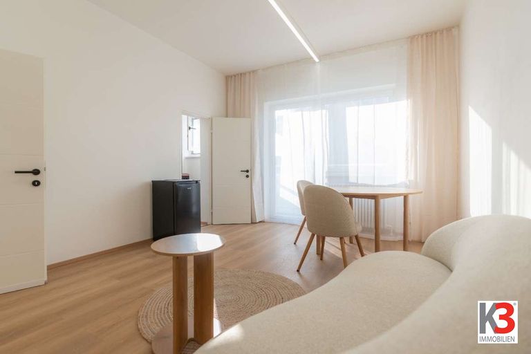 Diese geschmackvoll modernisierte Wohnung überzeugt durch eine effiziente Raumaufteilung mit kombiniertem Wohn- und Schlafbereich. Die separate Küche sowie das zeitgemäß ausgestattete Badezimmer mit Dusche und WC bieten angenehmen Wohnkomfort. Vom Wohnbereich aus gelangen Sie direkt auf den Balkon, der zusätzlichen Freiraum schafft. Die Wohnung wird vollständig möbliert übergeben und ist sofort bezugsfertig.