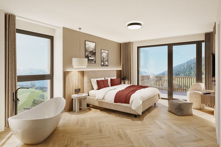 Dieses Apartment überzeugt durch drei Schlafzimmer mit En-Suite-Bädern, einen privaten Whirlpool sowie eine eigene Gartenfläche, die privaten Outdoor-Komfort und Wellness direkt vor der Haustür ermöglicht. Ein großzügiger Grundriss kombiniert Familienfreundlichkeit, Luxus und alpines Wohngefühl.