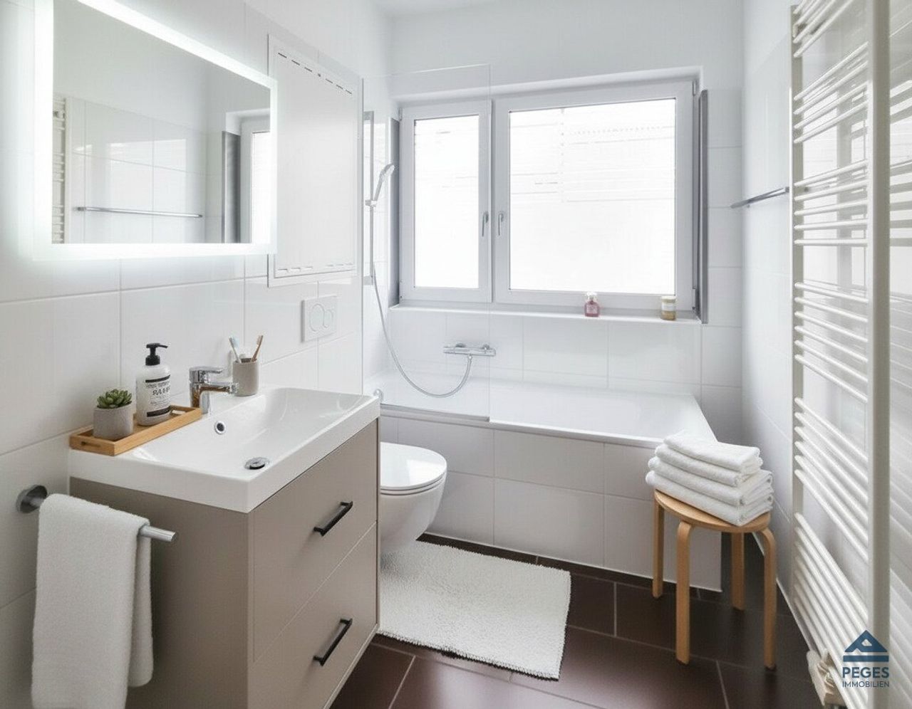Die Wohnung wird ohne Dekoration bzw. Mobiliar zum Kauf angeboten. Wir weisen ausdrücklich darauf hin, dass die auf den Fotos dargestellten Einrichtungsgegenstände KI-generiert wurden.