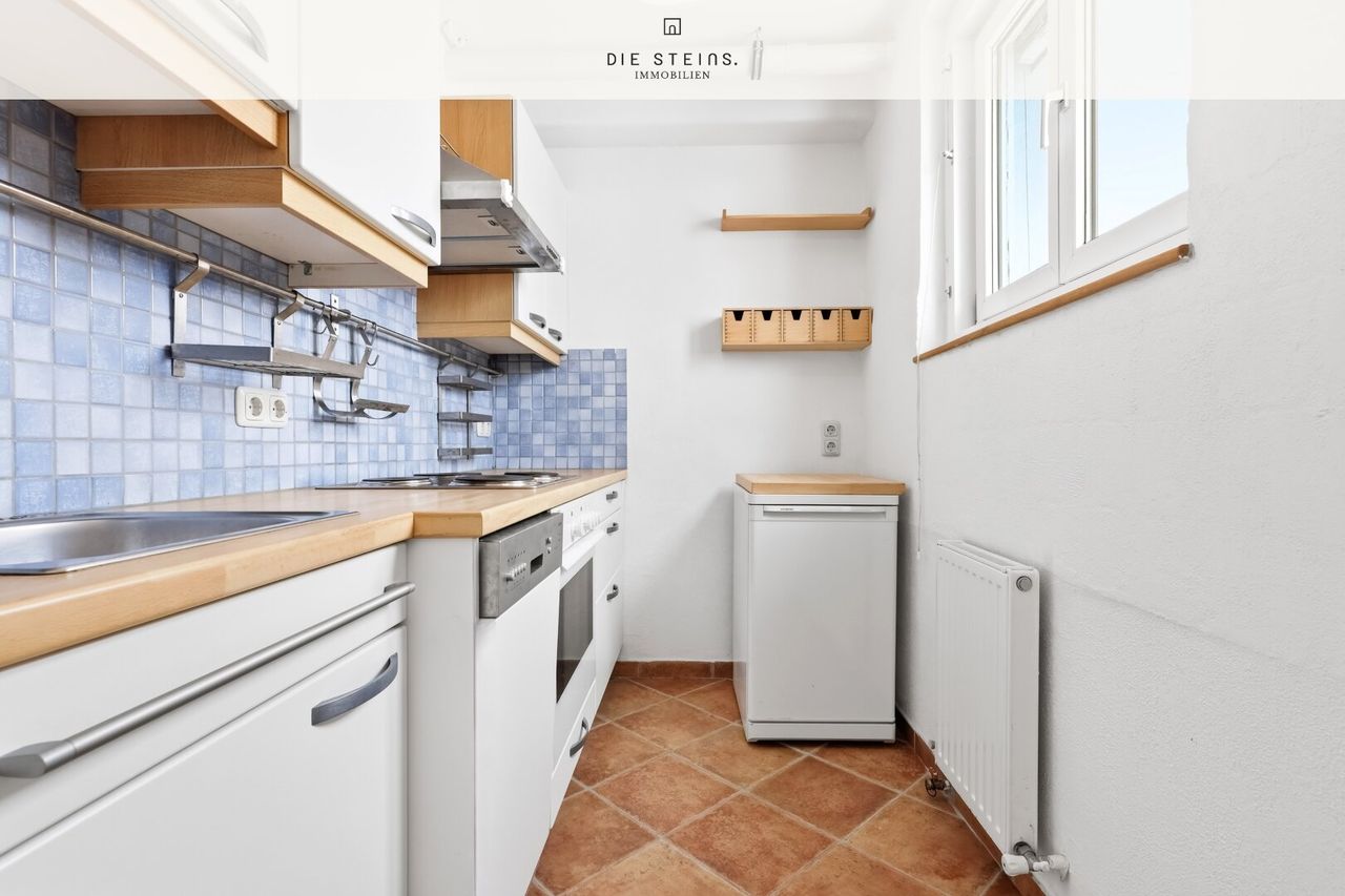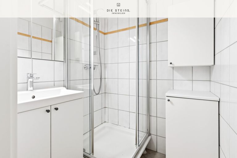 Angrenzend befinden sich die separate Küche mit Einbauküche, das Bad mit Dusche sowie ein gut möblierbares Schlafzimmer. Die Wohnung ist leer und kann unmittelbar übernommen werden – Sie können also zeitnah einziehen oder vermieten. Ein Kellerabteil sowie ein zusätzliches Dachbodenabteil sorgen für praktischen Stauraum für Sportequipment, Akten oder Saisonales.