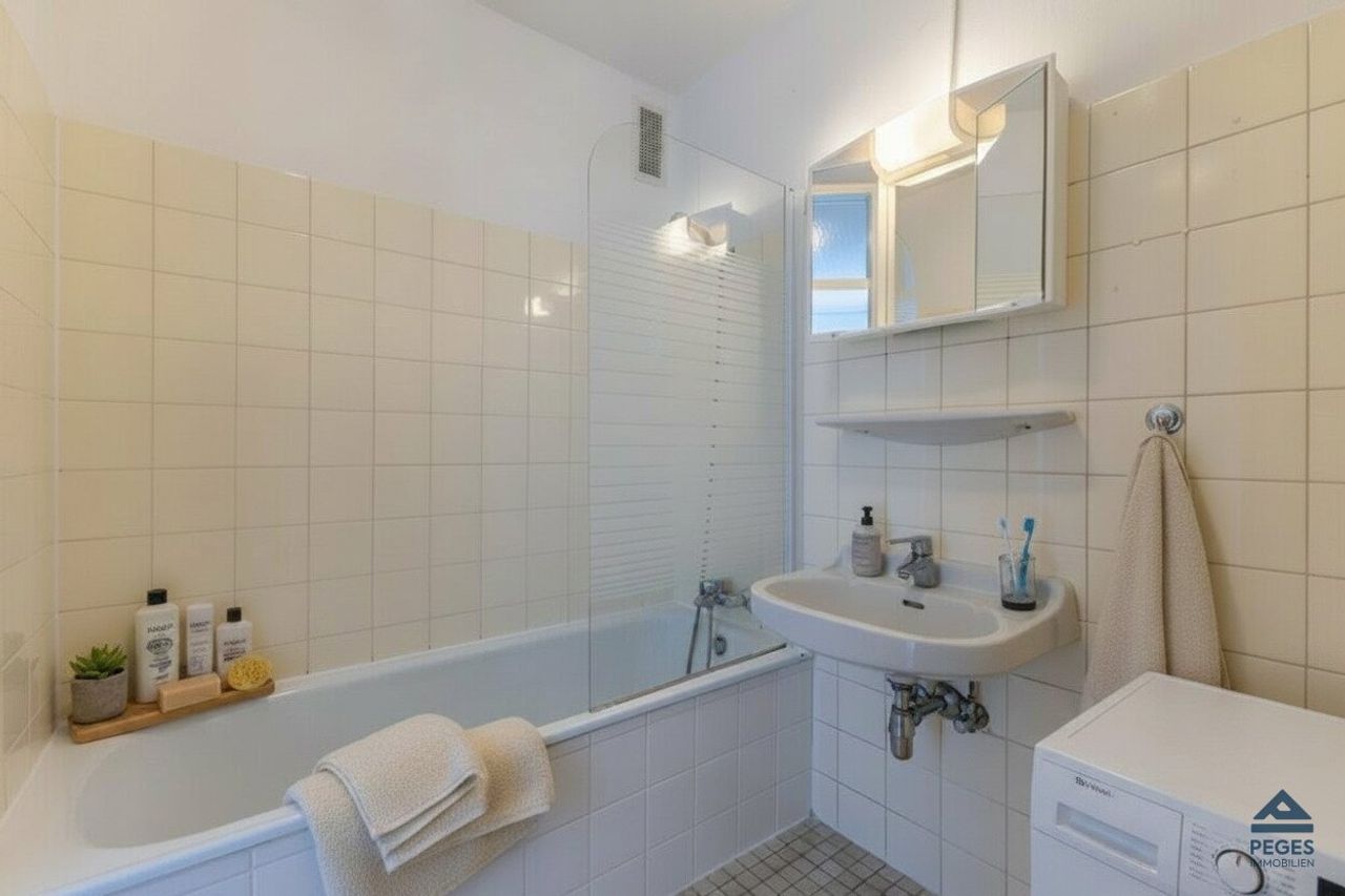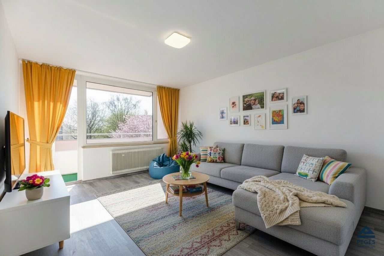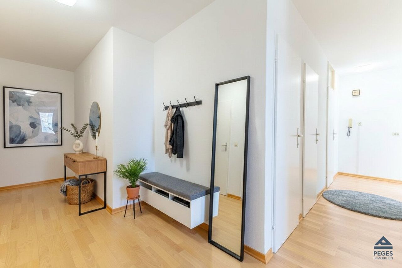 Die Wohnung wird ohne Dekoration bzw. Mobiliar zum Kauf angeboten. Wir weisen ausdrücklich darauf hin, dass die auf den Fotos dargestellten Einrichtungsgegenstände KI-generiert wurden.