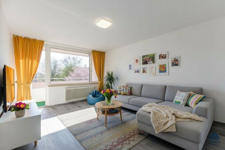 Die gut aufgeteilte 3-Zimmer-Wohnung liegt im 3. Obergeschoss des Hauses (mit Lift) und verfügt über eine Wohnfläche von ca. 74,79 m² zuzüglich Balkon (Loggia) mit ca. 4,46 m² und überzeugt mit durchdachtem Raumkonzept sowie angenehmer Helligkeit und schönem Fernblick.