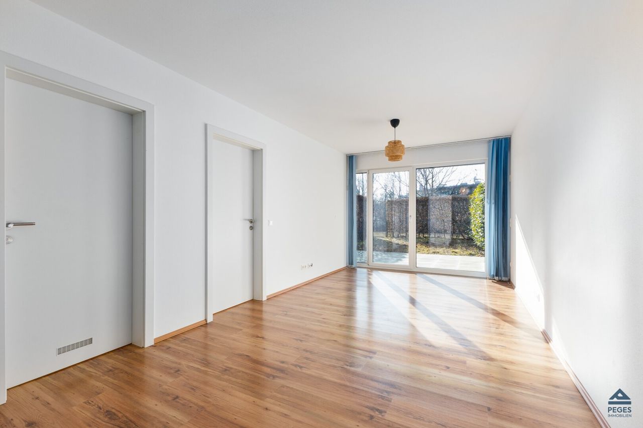 Sowohl die Terrasse, als auch der eigene Garten sind direkt vom Wohn- und Schlafzimmer aus zugänglich. Dank der Südwestausrichtung genießen Sie hier zahlreiche Sonnenstunden bis in den Abend hinein.