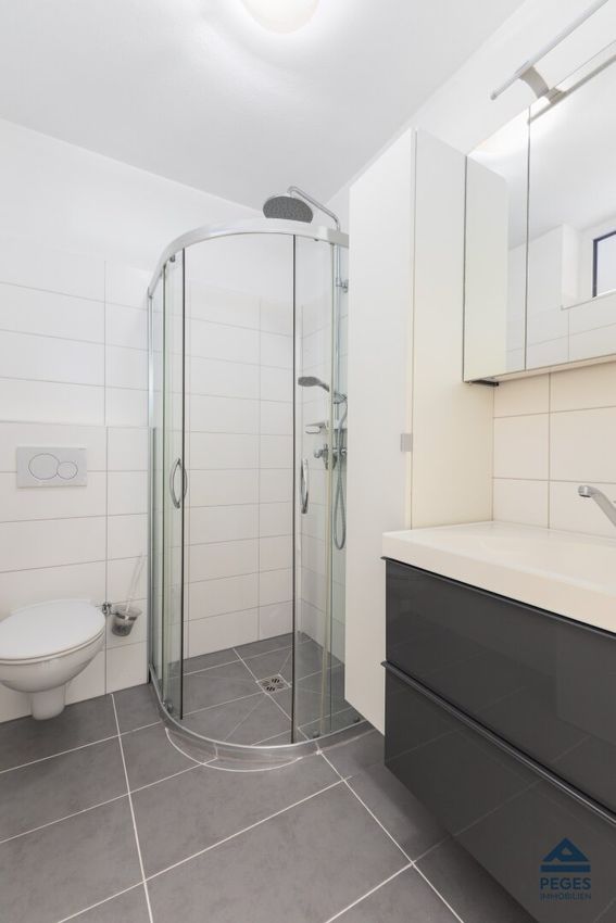 Bei einer Wohnfläche von 55,35 m² zuzüglich Terrasse mit ca. 15 m² und vorgelagertem Garten, überzeugt die im Erdgeschoß des Gebäudes gelegene Wohnung durch eine freundliche Gestaltung der Wohnräume. Herzstück ist der ideal aufgeteilte Wohn-/Essbereich mit offen gestaltetem Kochbereich samt Einbauküche in hellem, zeitlosem Design. Laminat- und Parkettboden in den Wohnräumen samt Fußbodenheizung sorgen für ein behagliches Ambiente. Das Bad samt WC präsentiert sich modern mit keramischen Belägen in attraktiven Kontrastfarben und einer barrierefreien, bodengleichen Eck-Dusche.