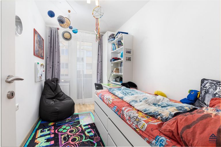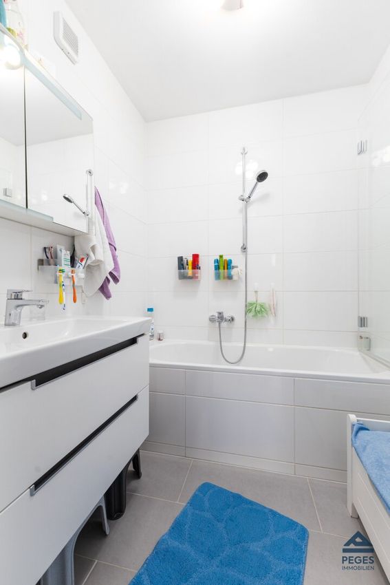 Das Schlafzimmer mit perfektem Schnitt bietet die ideale Schlaf- und Ruheumgebung. Die beiden weiteren Zimmer können als Kinderzimmer oder Büro genutzt werden. Parkettböden in den Wohnräumen und eine gepflegte Ausstattung (elektrische Jalousien in WZ und SZ, usw.) sorgen neben der angenehm hellen Gestaltung für Wohlfühlambiente. Das Bad ist mit einer Badewanne ausgestattet. Das WC ist separat und verfügt zudem über ein Handwaschbecken. Ein Waschmaschinen-Anschluss befindet sich im praktischen Abstellraum.