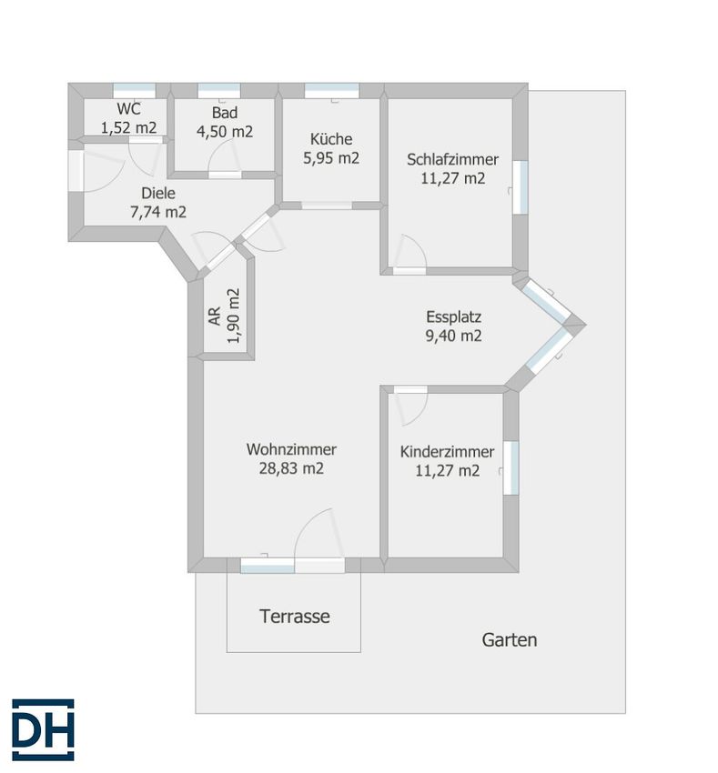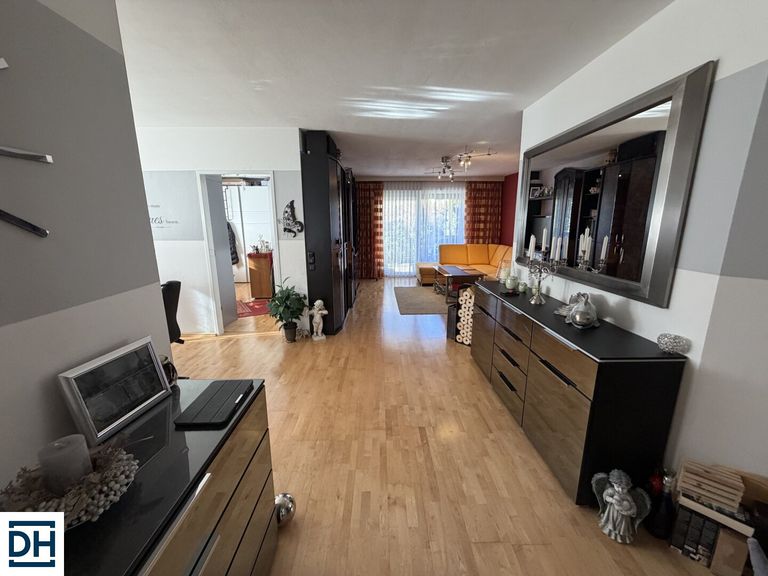 Der Garten sowie die sonnige Südwest-Terrasse laden zu entspannten Stunden im Freien ein, für gesellige Grillabende oder einfach zum Wohlfühlen im eigenen Grün. Die Wohnung besticht durch eine durchdachte Raumaufteilung, die sowohl Familien als auch Paaren oder Singles ein behagliches Wohnambiente schafft. Bei Bedarf könnte durch einziehen einer Wand im Essbereich ein weiteres Zimmer geschaffen werden. Beheizt wir die Wohnung über eine Gas Zentralheizung, zusätzlich gibt es einen Kaminanschluss mit einem Dänischen Holzofen im Wohnzimmer.