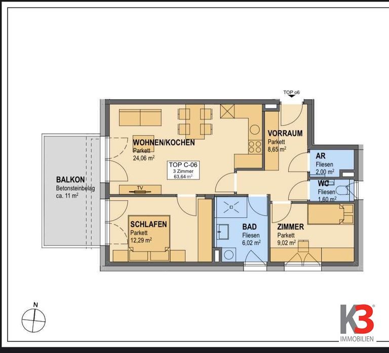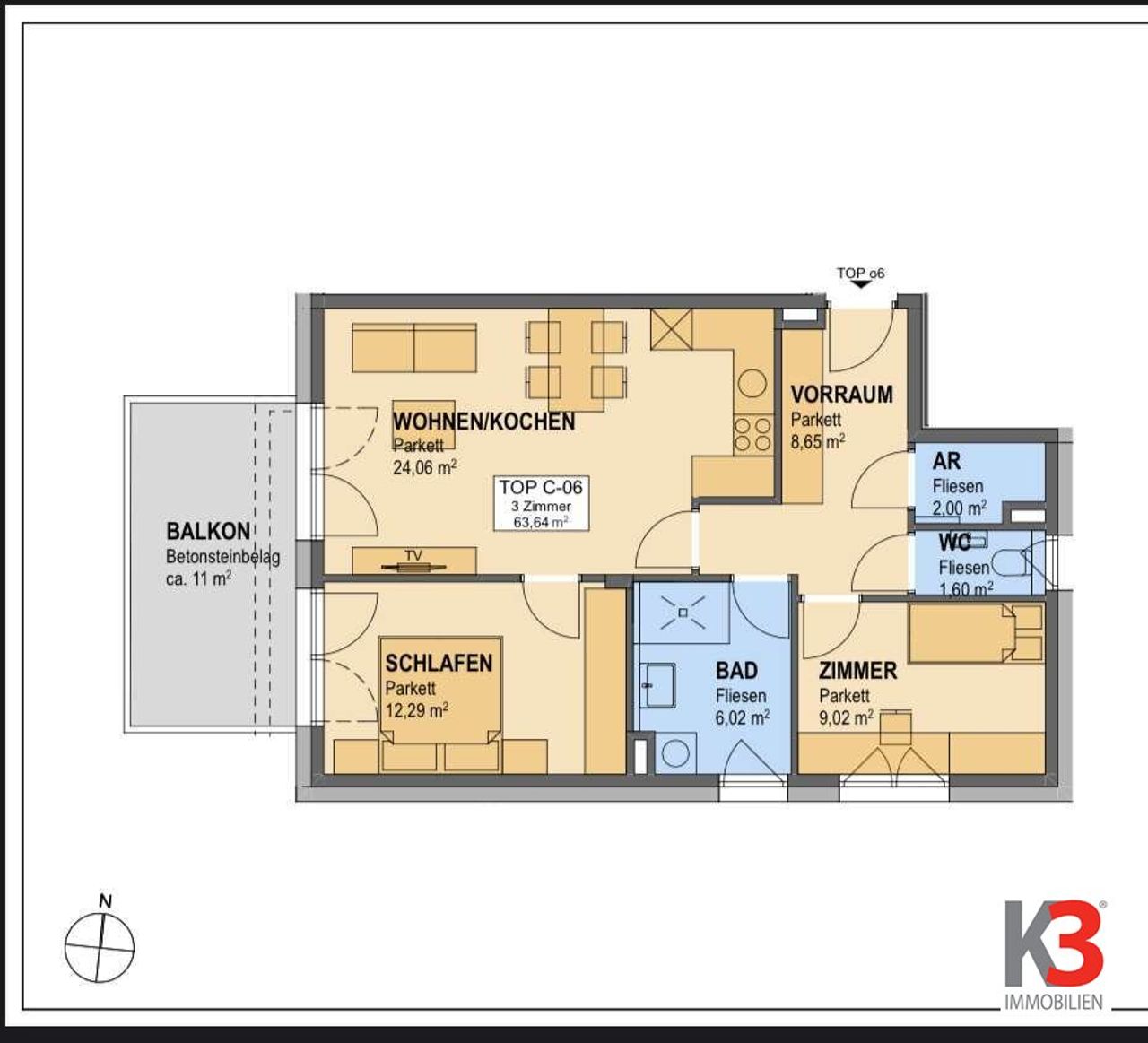 K3 - Elixhausen - Moderne 3-Zimmer-Wohnung in neuwertigem Zustand, Südbalkon, 1 Tiefgaragenplatz!!!