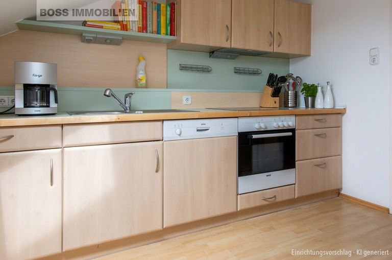 Die Küche dieser Wohnung wird unentgeltlich zur Verfügung gestellt. Zaubern Sie hier schmackhafte Gerichte für Sie und Ihre Familie.