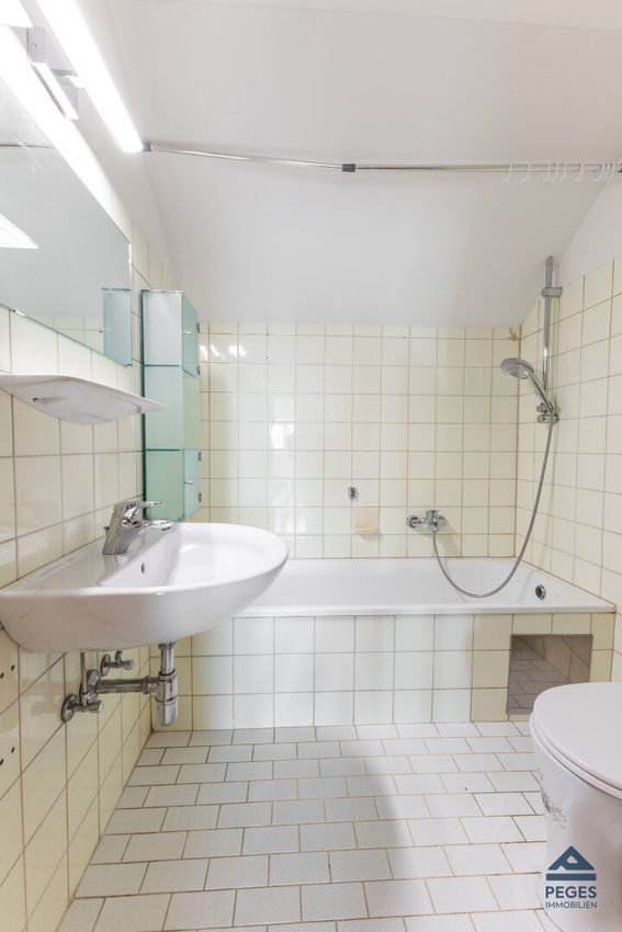 Die gepflegte Eigentumswohnung bietet eine durchdachte räumliche Einteilung mit 2 getrennten Zimmern sowie separater Wohnküche (-Platz für Essbereich) und ein ansprechend helles Wohnambiente. Ausreichend Platz für die Garderobe findet sich im praktisch geschnittenen Eingangsbereich. Das Wohnzimmer (wie auch das Schlafzimmer) mit charmanten Dachschrägen / Dachgauben ist mit Parkettboden ausgestattet und bietet den perfekten Rahmen für das gesellige Beisammensein. Die separate Küche ist mit einer hellen Einbauküche (inkl. Geräten: Geschirrspüler, usw.) ausgestattet. Das Bad (samt Toilette) ist mit einer Badewanne ausgestattet.