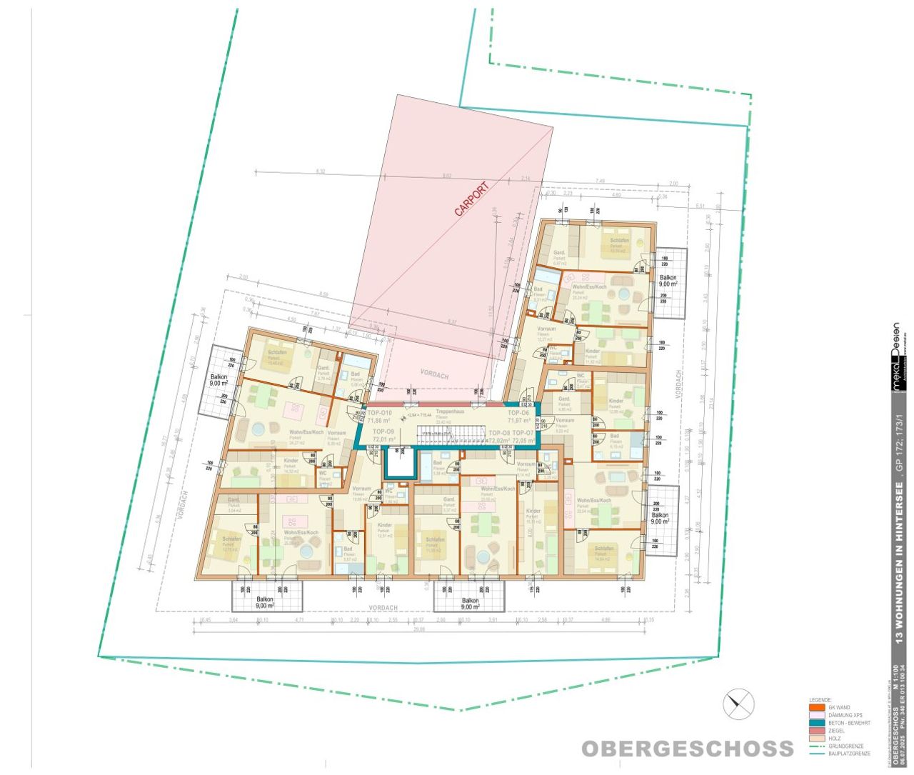 Obergeschoss: Vier 3-Zimmer-Wohnungen mit Balkon (Wohnfläche ca. 72,50 m²) + ( Balkon ca. 9 m² )