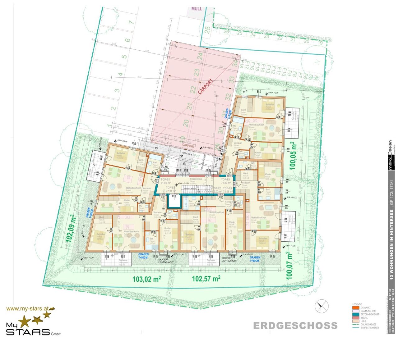 + 2 Parkplätze um € 25.000,-- obligat oder einen Doppelcarport um € 36.000,-- inkl. USt.