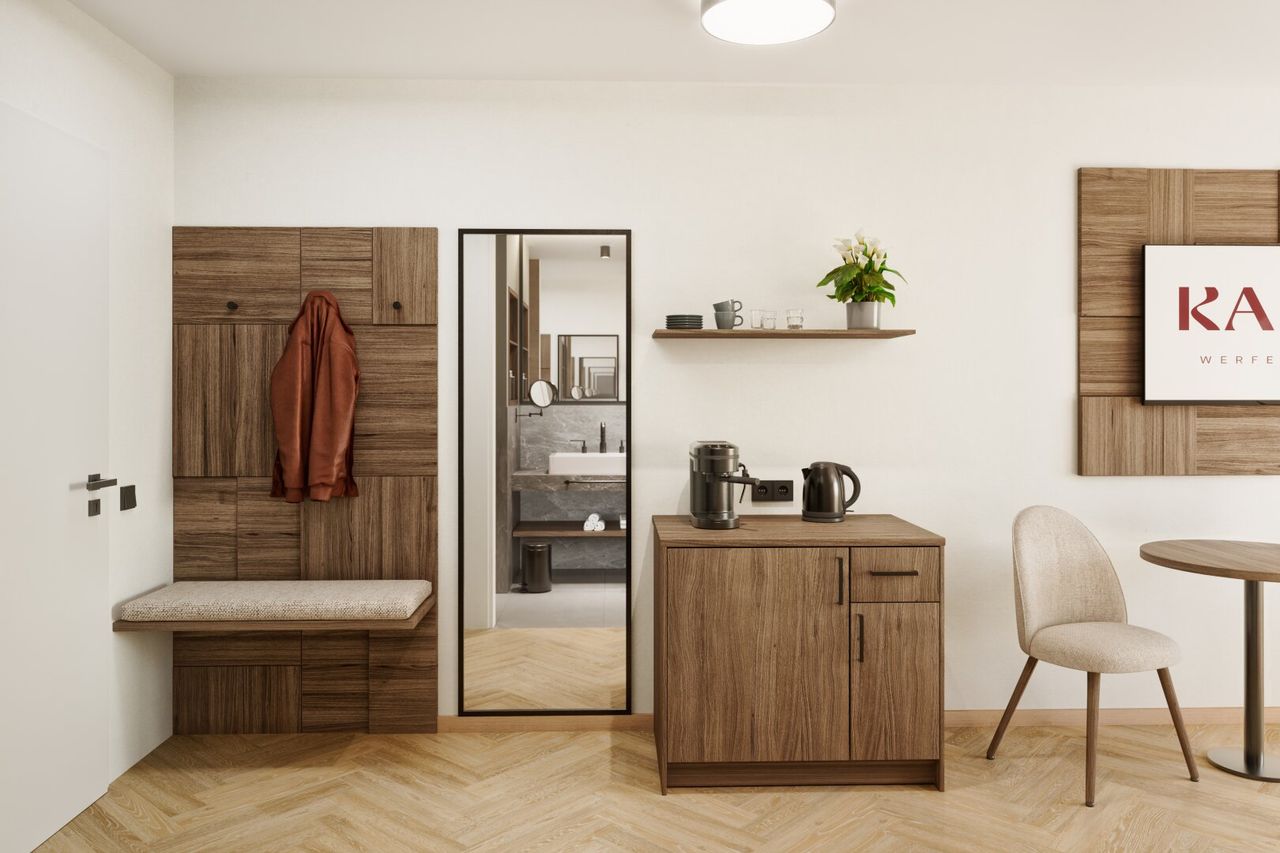 Alle Apartments werden schlüsselfertig inklusive moderner Küche und exklusiver Möblierung übergeben. !!! Fertigstellung ist mit Q3 2026 geplant !!! Die Ausstattung erfüllt höchste Ansprüche an Komfort, Design und Langlebigkeit und ist konsequent auf die ganzjährige touristische Nutzung ausgelegt.