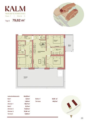 Zum Verkauf steht ein exklusives Ferienapartment mit einer Wohnfläche von ca. 79 m², eingebettet in ein hochwertiges Resort direkt an der Talstation der Rosnerköpflbahn in Werfenweng.