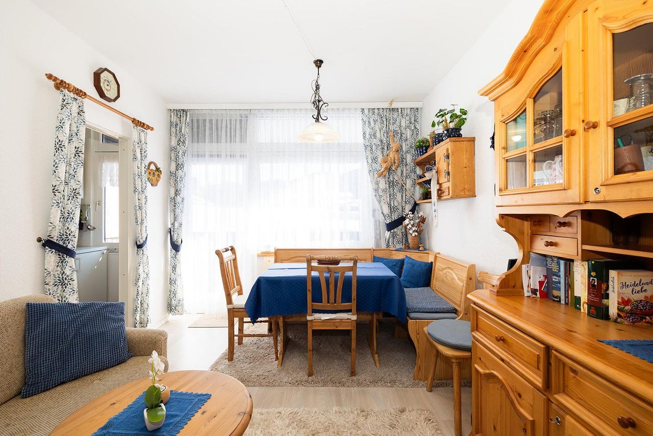 Schon beim Eintreten spürt man: Hier zählt Gemütlichkeit. Der helle Wohn- und Essbereich mit liebevoller Einrichtung lädt zum Ankommen ein, die Schlafnische sorgt für erholsame Nächte nach aktiven Tagen in der Natur. Die praktische Küche ist kompakt, aber bestens geeignet für das Frühstück vor der Wanderung oder ein entspanntes Abendessen.