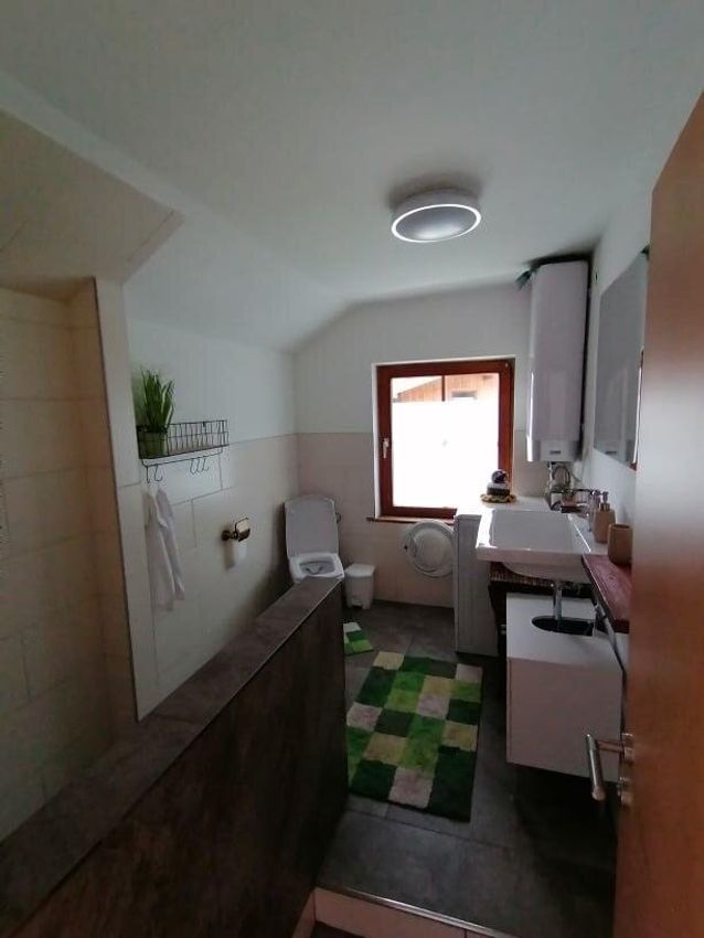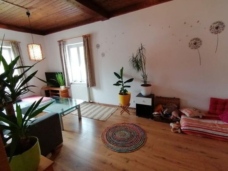 Die Wohnung befindet sich im ersten Stock eines historischen Gebäudes, das einst als Schule im Jahr 1870 diente. Die ruhige, gepflegte Wohnanlage beherbergt insgesamt 4 Wohnungen und bietet eine familiäre Atmosphäre. Die Bushaltestelle liegt direkt neben dem Haus, was eine ausgezeichnete Anbindung an die umliegenden Orte bietet.