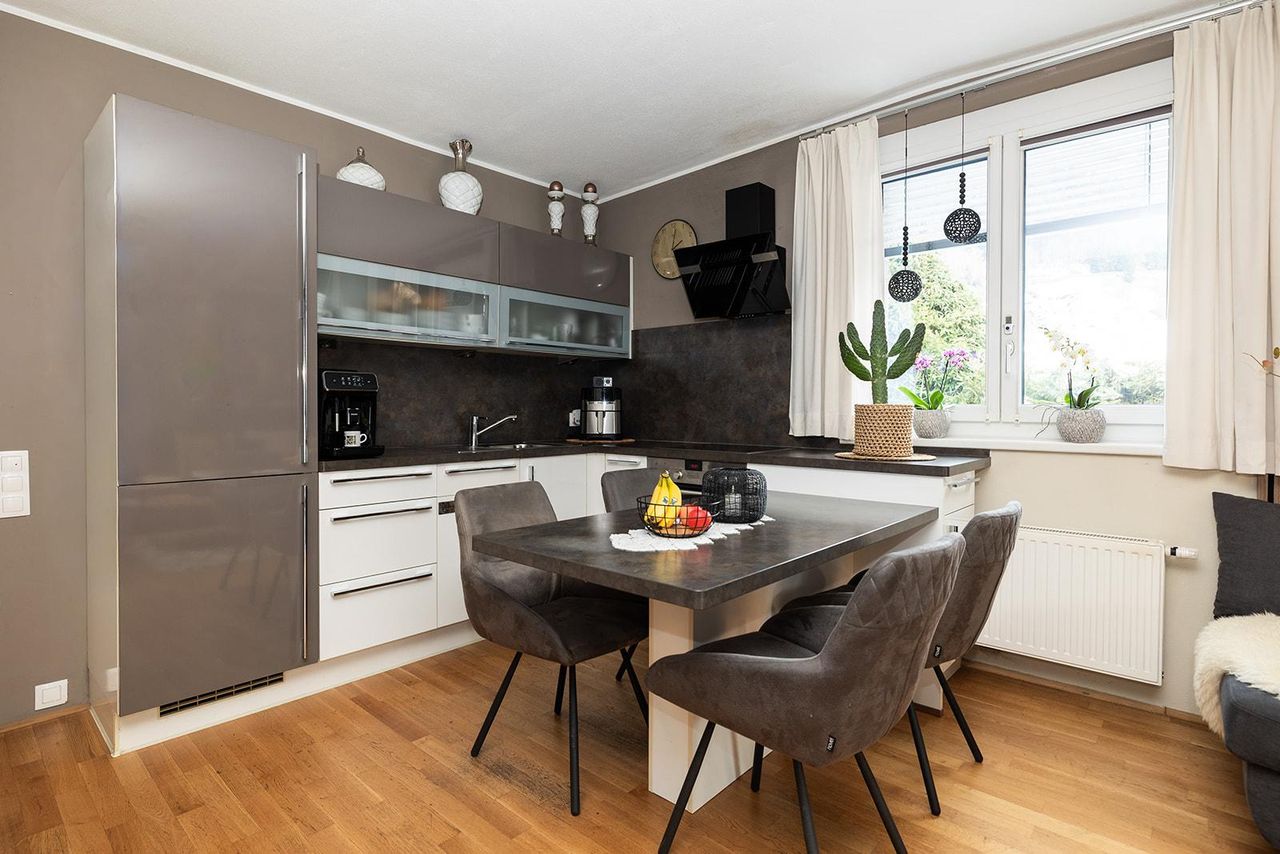 Das Herzstück der Wohnung bildet der offen gestaltete Wohn- und Essbereich mit Küche – lichtdurchflutet, modern und perfekt für gemütliche Abende oder gesellige Stunden. Von hier aus gelangen Sie direkt auf den Balkon, der mit Platz für Sitzmöbel zum Entspannen im Freien einlädt.