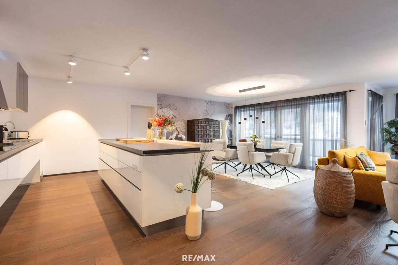 Diese exklusive Wohnung vereint alpinen Charme mit modernem Wohnkomfort und einer durchdachten Raumgestaltung. Auf ca. 146 m² Wohnfläche erwartet Sie ein hochwertiges Zuhause mit brandneuer, stilvoller Vollmöblierung, das ohne zusätzlichen Aufwand sofort bezogen werden kann – ideal für alle, die direkt einziehen und sich wohlfühlen möchten.