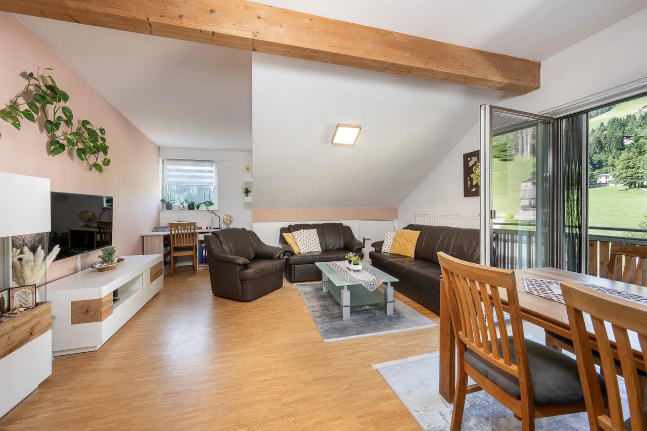 In der ruhigen, sonnenverwöhnten Berglandschaft von Kleinarl liegt diese besondere Dachgeschosswohnung – ein Ort, an dem Ankommen sofort wie Heimkommen fühlt. Schon beim Betreten spürt man den warmen Charme, der durch Holz, Licht und natürliche Materialien entsteht. Große Fensterfronten holen die beeindruckende Kulisse der Alpen direkt ins Wohnzimmer und lassen jeden Tag mit einem Gefühl von Weite und Freiheit beginnen.