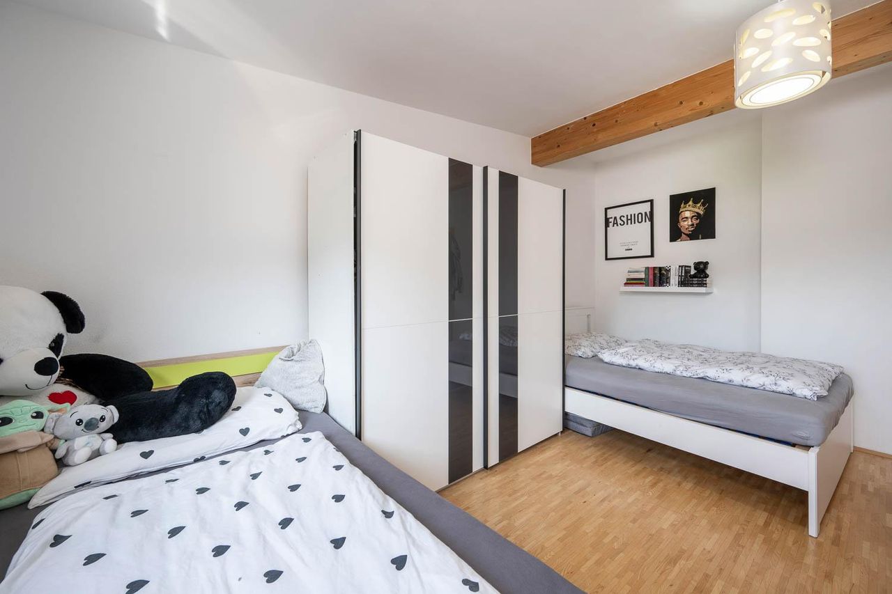 Auch die Schlafzimmer strahlen Geborgenheit aus – Rückzugsorte, in denen man sich nach einem aktiven Tag in den Bergen einkuscheln kann. Die liebevolle Gestaltung, helle Farben und der alpine Stil schaffen ein harmonisches Ambiente, das Körper und Seele gleichermaßen guttut.