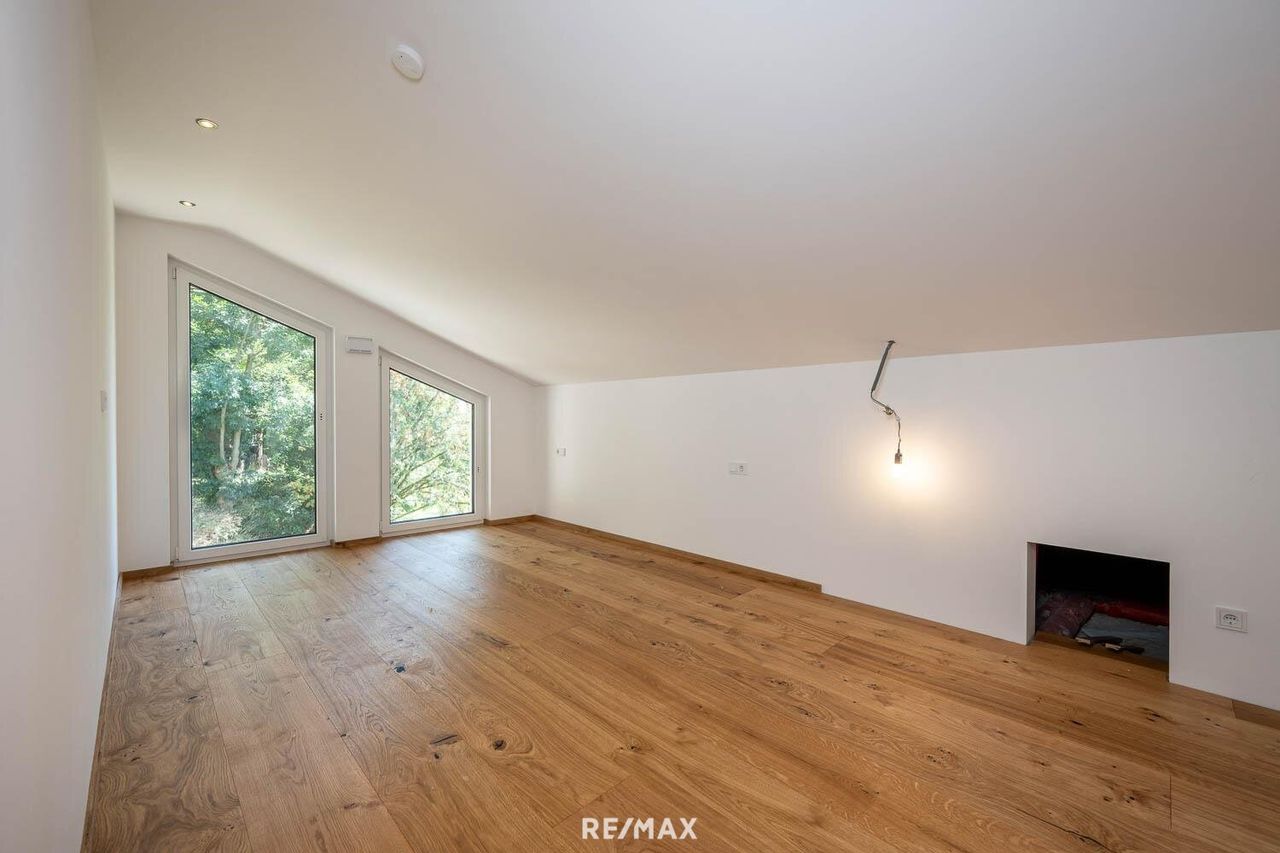 Zusätzlich verfügt das Penthouse über Terrasse, Balkon und einen privaten Gartenbereich, die vielfältige Möglichkeiten für Rückzug und Freiraum im Grünen bieten. Ein besonderes Highlight ist der Lift mit direktem Zugang in die Wohnung, der höchsten Wohnkomfort, absolute Privatsphäre und barrierefreien Zugang garantiert.