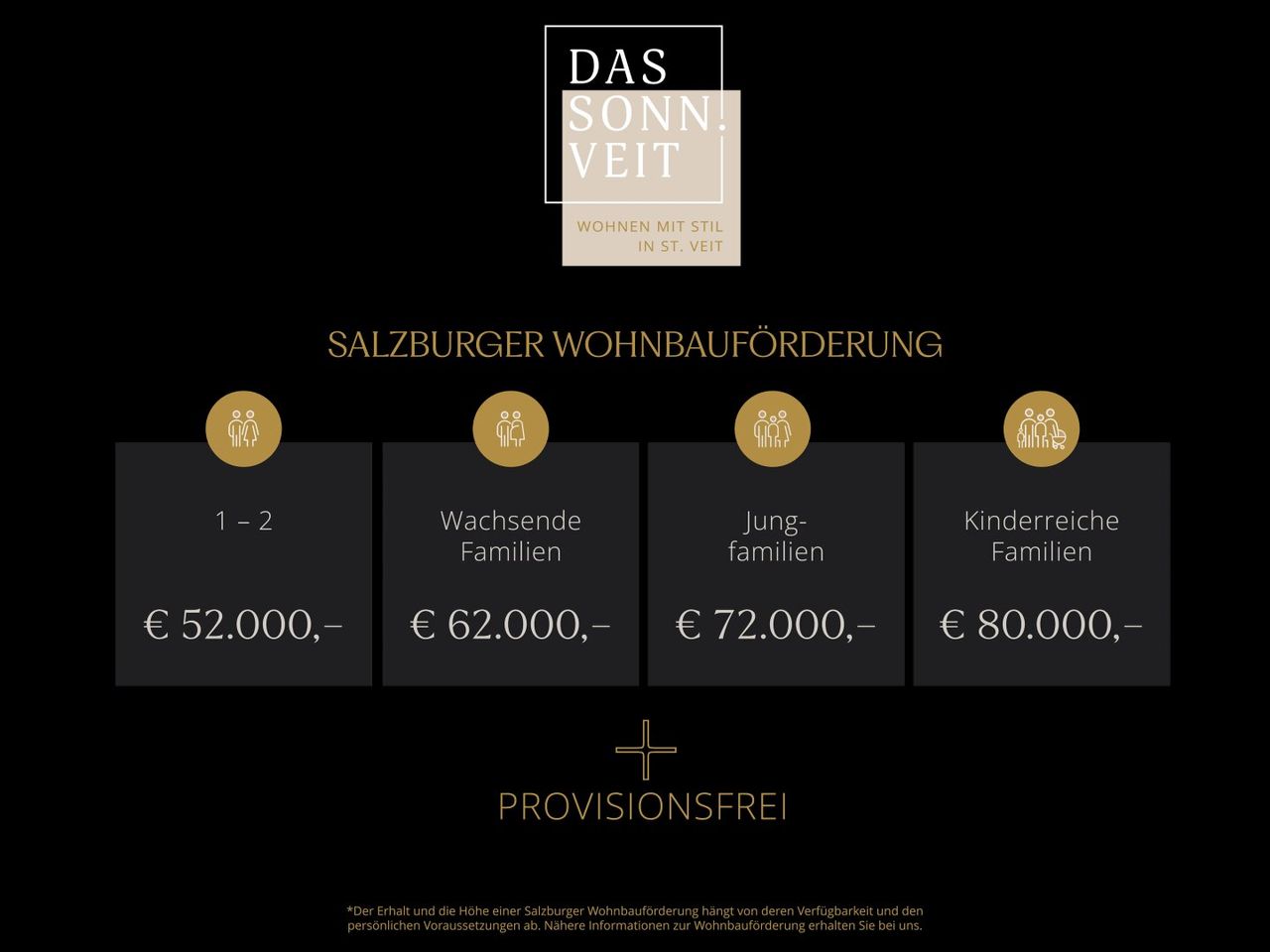 Aktuell gibt es noch die Salzburger Wohnbauförderung mit bis zu € 80.000,00 Einmalzuschuss beim Kauf eines Neubauimmobilie.*