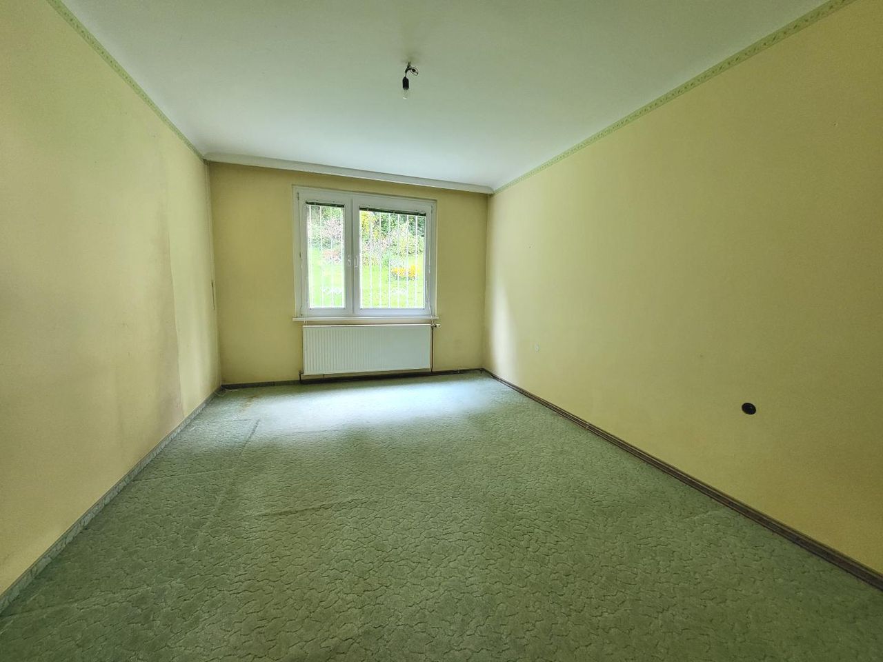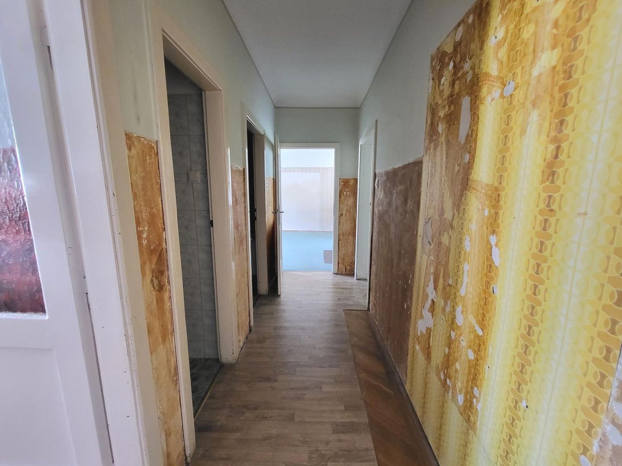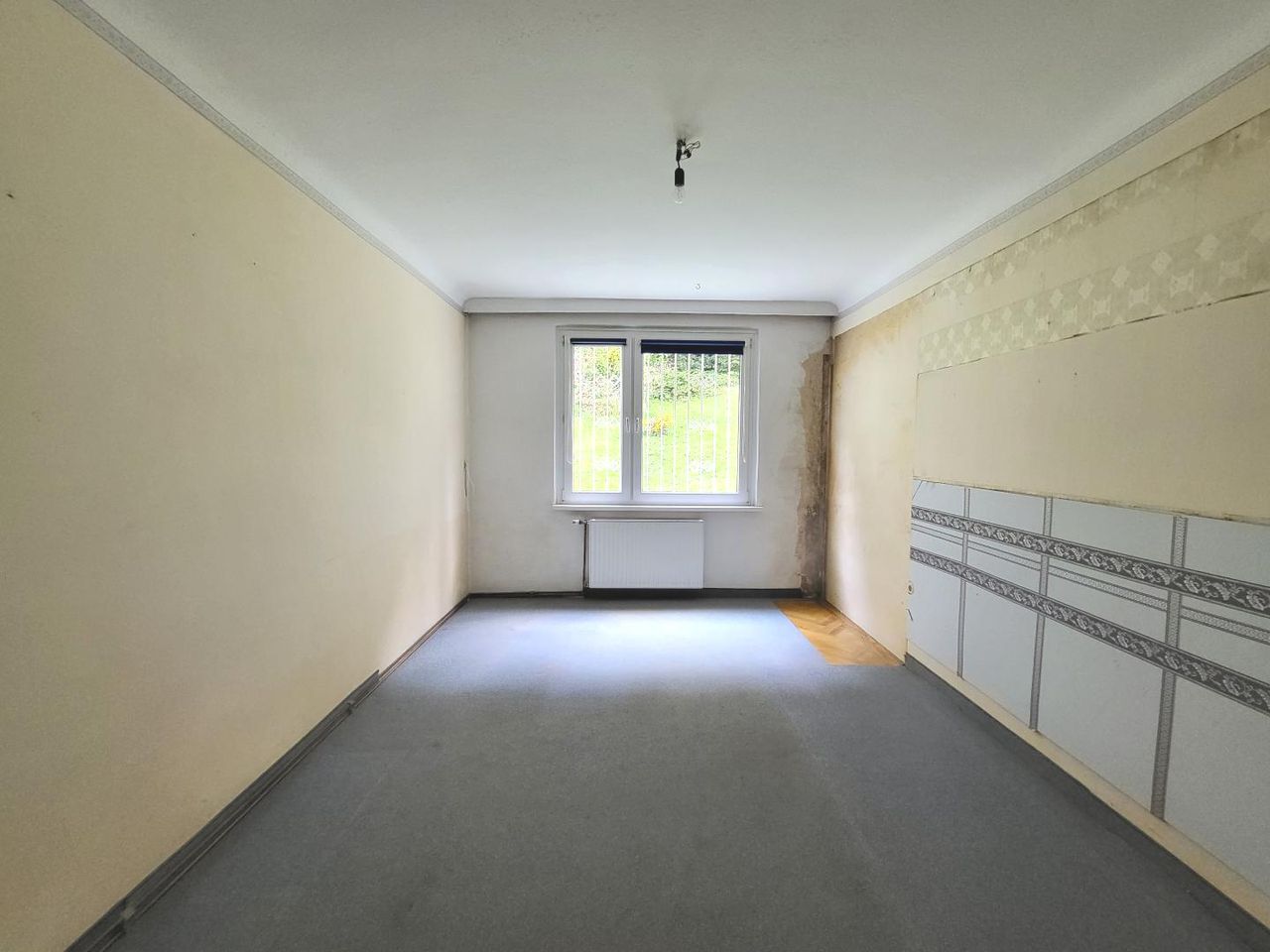 AUSSTATTUNG UND ZUSTAND: Gasetagenheizung mit Radiatoren; Kunststofffenster zweifach verglast; Teppichboden, darunter Parkett. Die Wohnung befindet sich in einem sanierungsbedürftigen Zustand.