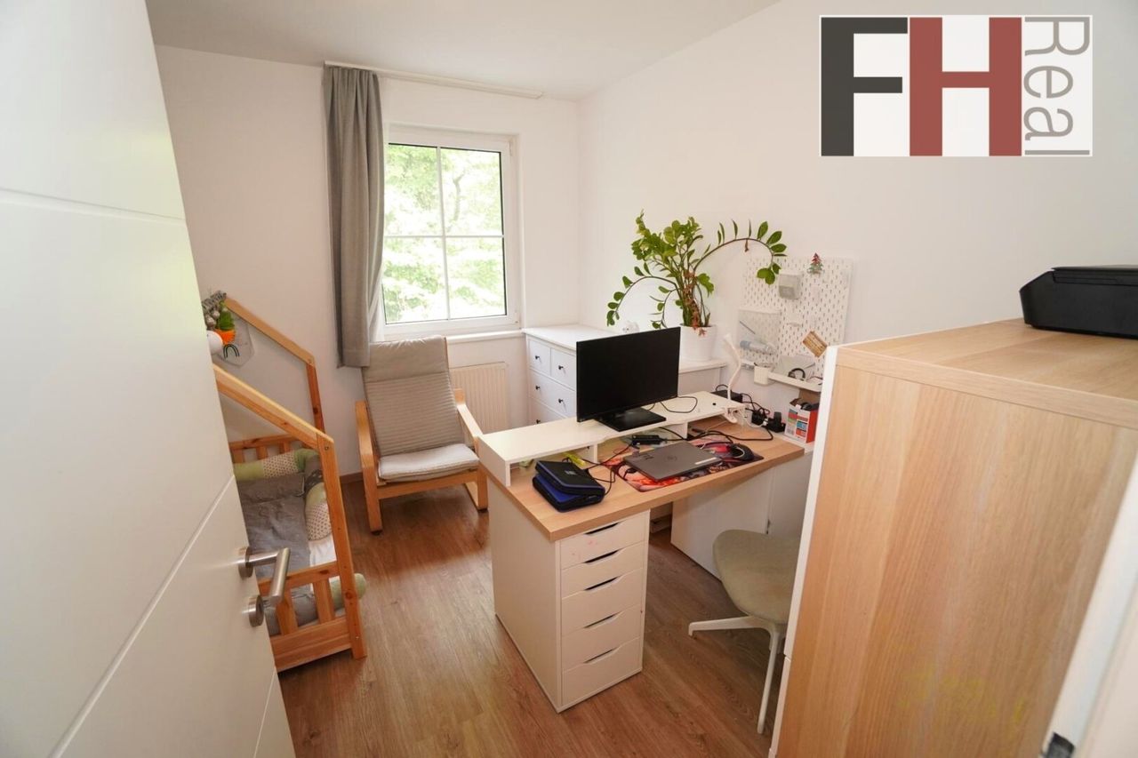 Die beiden bestehenden Schlafzimmer weisen mit 12,5 sowie 10 m2 beide eine funktionale Größe auf und verwöhnen mit einem schönen Ausblick direkt ins Grüne. Viel Stauraum ist im knapp 12 m² großen Vorzimmer garantiert. Ebenso sind von hier auch, wie in dieser Wohnklasse üblich, Bad und Toilette separiert zugänglich.
