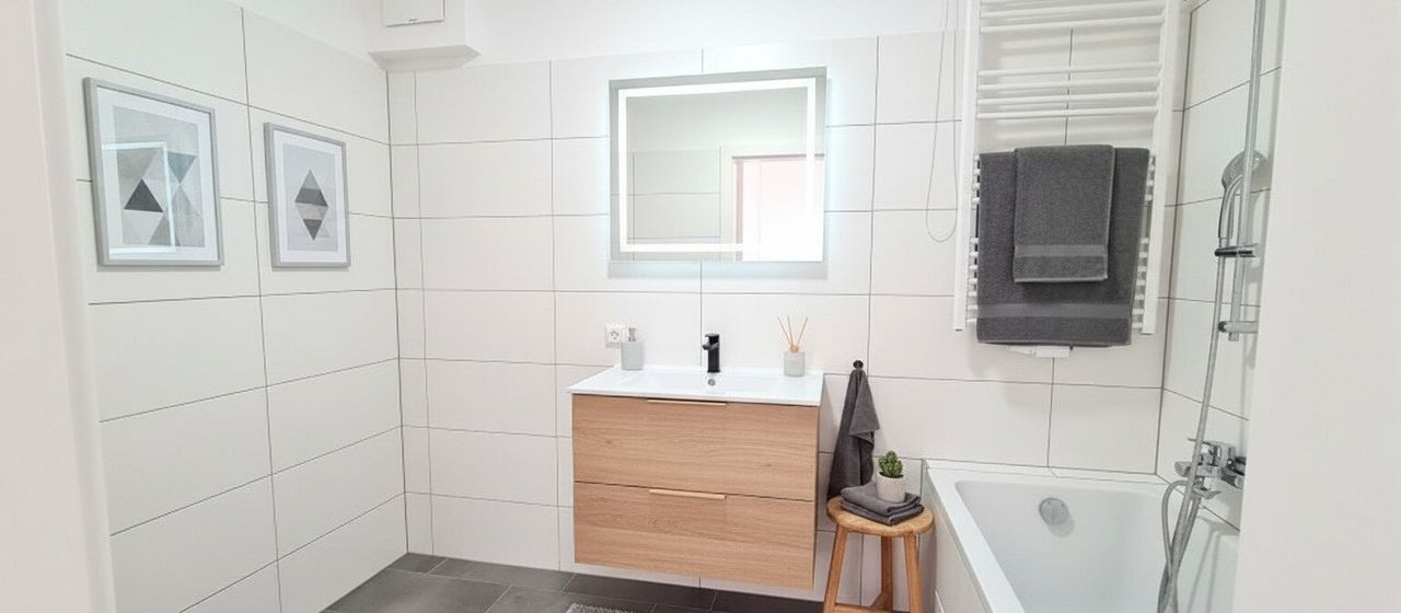 Die schicke 3-Zimmerwohnung im 1. Obergeschoss betritt man durch den gepflegten Eingangsbereich, welcher ausreichend Platz für eine Garderobe sowie den zentralen Zugang zu allen Räumlichkeiten der Wohnung bietet. Unmittelbar rechts vom Eingangsbereich befindet sich das Badezimmer mit Duschbadewanne und ein seperates WC. Beide Nassräume sind durchgehend mit modernen Fliesen ausgestattet. Ein Abstellraum schafft Stauraum für nützliche Alltagsgegenstände. Die beiden Schlafräume sind ca. gleich groß, wobei sich als Master-Bedroom das rechte auszeichnet, da es eine Spur größer ist. Der zweite Schlafraum bietet sich idealerweise als Büro an, z.B. um Homeoffice zu betreiben. Die großen Fenster sorgen für viel Licht im Wohnraum, der helle Parkett lässt den Raum offen und freundlich wirken. Der sonnige, idyllische Balkon gewährt Ruhe und Erholung für Ihren Feierabend oder das sonntägliche Frühstück im Freien. Die Wohnung wird ohne Küche verkauft.