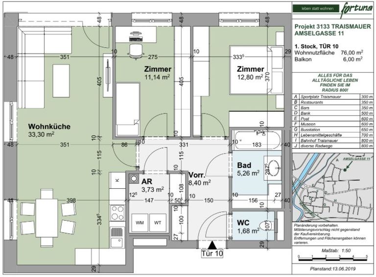 Das Gebäude selbst befindet sich in ruhiger Wohnlagen im Nordosten von Traismauer. In unmittelbarer Nähe finden Sie alles, was Sie für den täglichen Bedarf benötigen. Ärzte und Apotheken sind bequem zu Fuß oder mit dem Fahrrad erreichbar. Auch für Familien ist diese Lage ideal, denn sowohl eine Schule als auch ein Kindergarten befinden sich in der Nähe. Ihre Einkäufe können Sie bequem in einem Supermarkt und einer Bäckerei erledigen, die ebenfalls nur wenige Gehminuten entfernt sind.