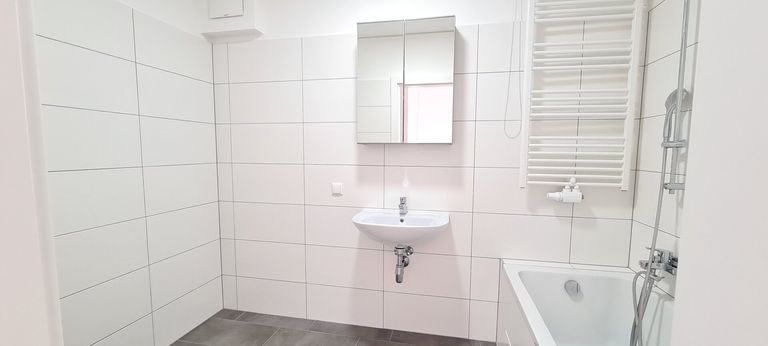 Die schicke 2-Zimmerwohnung im Erdgeschoss betritt man durch den gepflegten Eingangsbereich, welcher ausreichend Platz für eine Garderobe sowie den zentralen Zugang zu allen Räumlichkeiten der Wohnung bietet. Unmittelbar links vom Eingangsbereich befindet sich das Badezimmer mit Duschbadewanne und ein seperates WC. Beide Nassräume sind durchgehend mit modernen Fließen ausgestattet. Ein Abstellraum schafft Stauraum für nützliche Alltagsgegenstände. Das Schlafzimmer bietet genügend Platz für ein großes Bett und einen Kleiderschrank. Der Wohn- Essbereich ist mit einer Einbauküche sowie modernen Gerätschaften ausgestattet. Die großen Fenster sorgen für viel Licht im Wohnraum, der helle Parkett lässt den Raum offen und freundlich wirken. Die sonnige, idyllische Terrasse gewährt mitsamt einer Gartenfläche von 28,00m² Ruhe und Erholung und hat eine angenehme Größe für einen geselligen Grillabend.