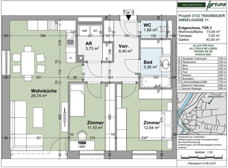 Das Gebäude selbst befindet sich in ruhiger Wohnlagen im Nordosten von Traismauer. In unmittelbarer Nähe finden Sie alles, was Sie für den täglichen Bedarf benötigen. Ärzte und Apotheken sind bequem zu Fuß oder mit dem Fahrrad erreichbar. Auch für Familien ist diese Lage ideal, denn sowohl eine Schule als auch ein Kindergarten befinden sich in der Nähe. Ihre Einkäufe können Sie bequem in einem Supermarkt und einer Bäckerei erledigen, die ebenfalls nur wenige Gehminuten entfernt sind.