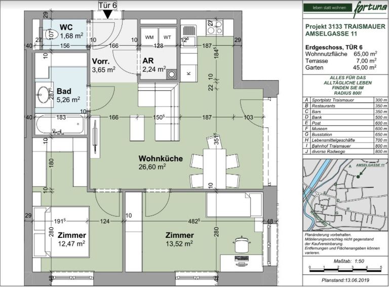 Das Gebäude selbst befindet sich in ruhiger Wohnlagen im Nordosten von Traismauer. In unmittelbarer Nähe finden Sie alles, was Sie für den täglichen Bedarf benötigen. Ärzte und Apotheken sind bequem zu Fuß oder mit dem Fahrrad erreichbar. Auch für Familien ist diese Lage ideal, denn sowohl eine Schule als auch ein Kindergarten befinden sich in der Nähe. Ihre Einkäufe können Sie bequem in einem Supermarkt und einer Bäckerei erledigen, die ebenfalls nur wenige Gehminuten entfernt sind.