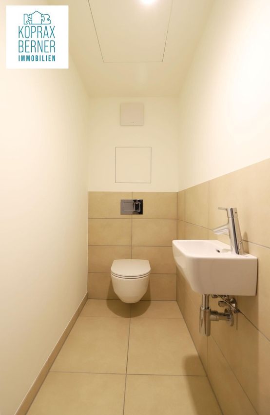 - Hochwertige Feinsteinzeug-Fliesen in Bad und WC.