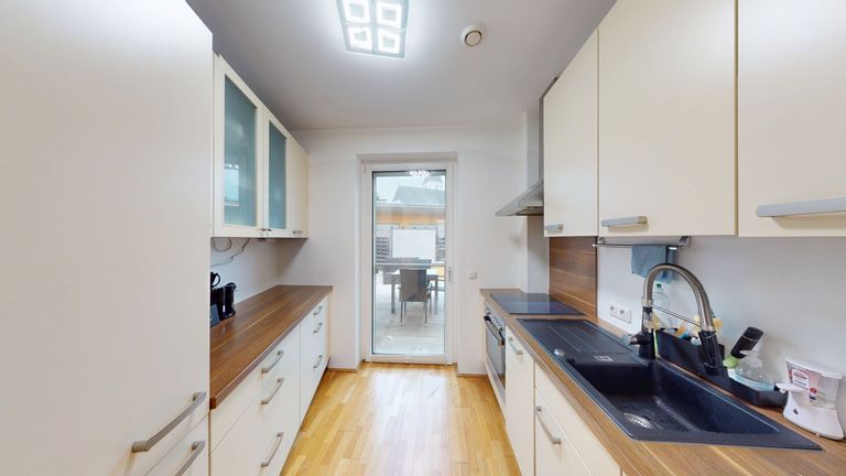 Die Wohnung wird inklusive einer modernen Einbauküche und Badezimmerausstattung übergeben.