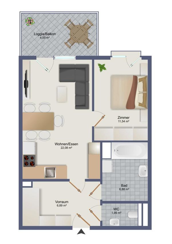 - Grundriss Typ B, 2-Zimmer-Wohnung
