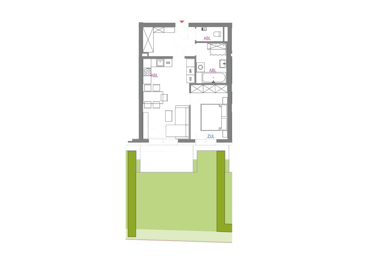 - Grundriss Typ B, 2-Zimmer-Wohnung