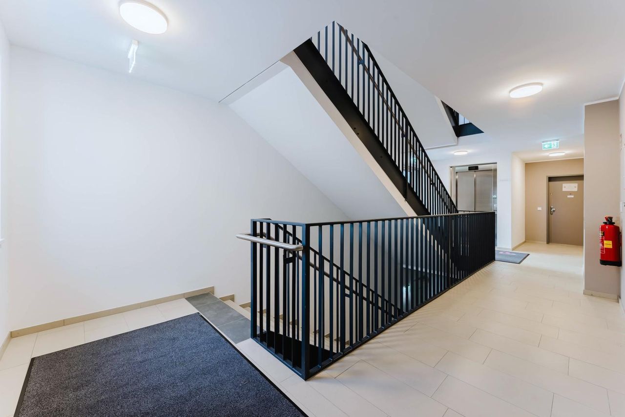 Errichtet wurden, verteilt auf 2 Baukörper (Haus 1 und Haus 2), insgesamt 37 sehr gut ausgestattete Wohnungen. Die Ausstattung umfasst Parkettböden mit Fußbodenheizung, Raffstores mit Funkfernbedienung, hochwertige 3-Scheiben-Wärmeverglasung, barrierefreundliche Badewanne und sogar eine Wohnraumlüftung! Die Zentralheizung wird optimal mit Fernwärme versorgt. Wasser- und Wärmeverbrauch erfolgen zeitgemäß für jede Wohnung separat je nach Verbrauch.