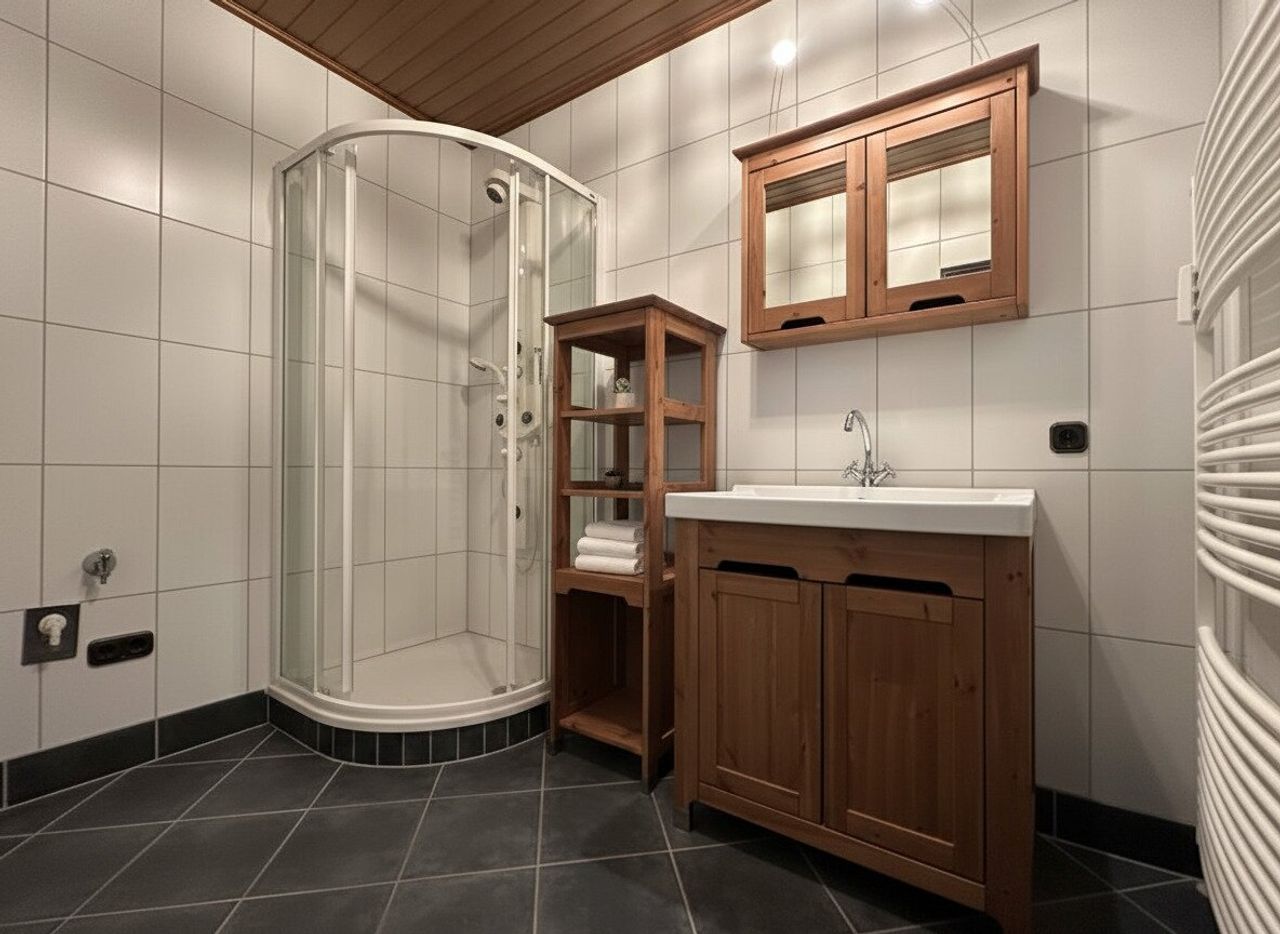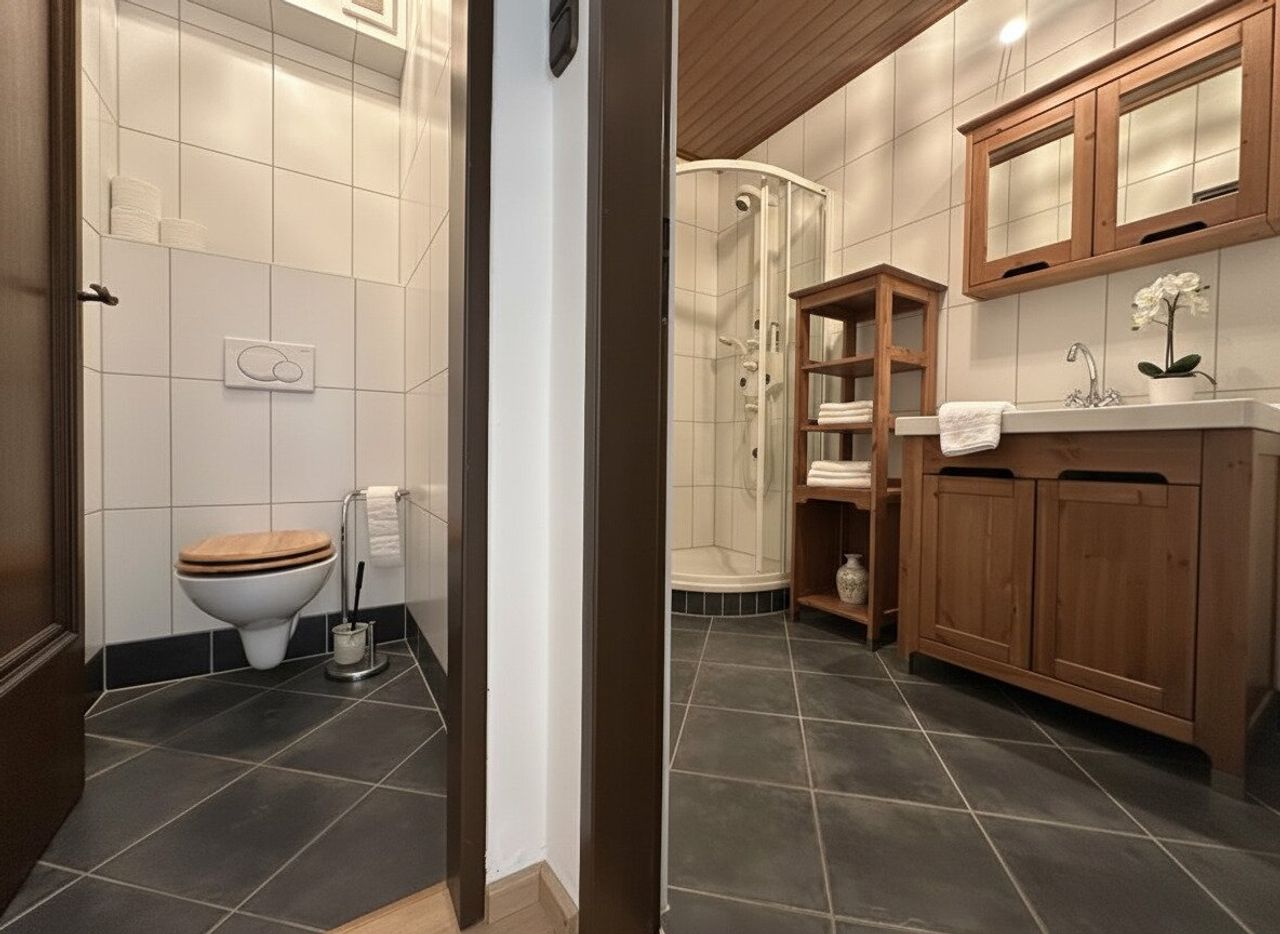 Das Badezimmer ist zeitlos ausgestattet und sehr gepflegt. Die Wohnung verfügt zudem über ein separates WC, was den Wohnkomfort zusätzlich erhöht.