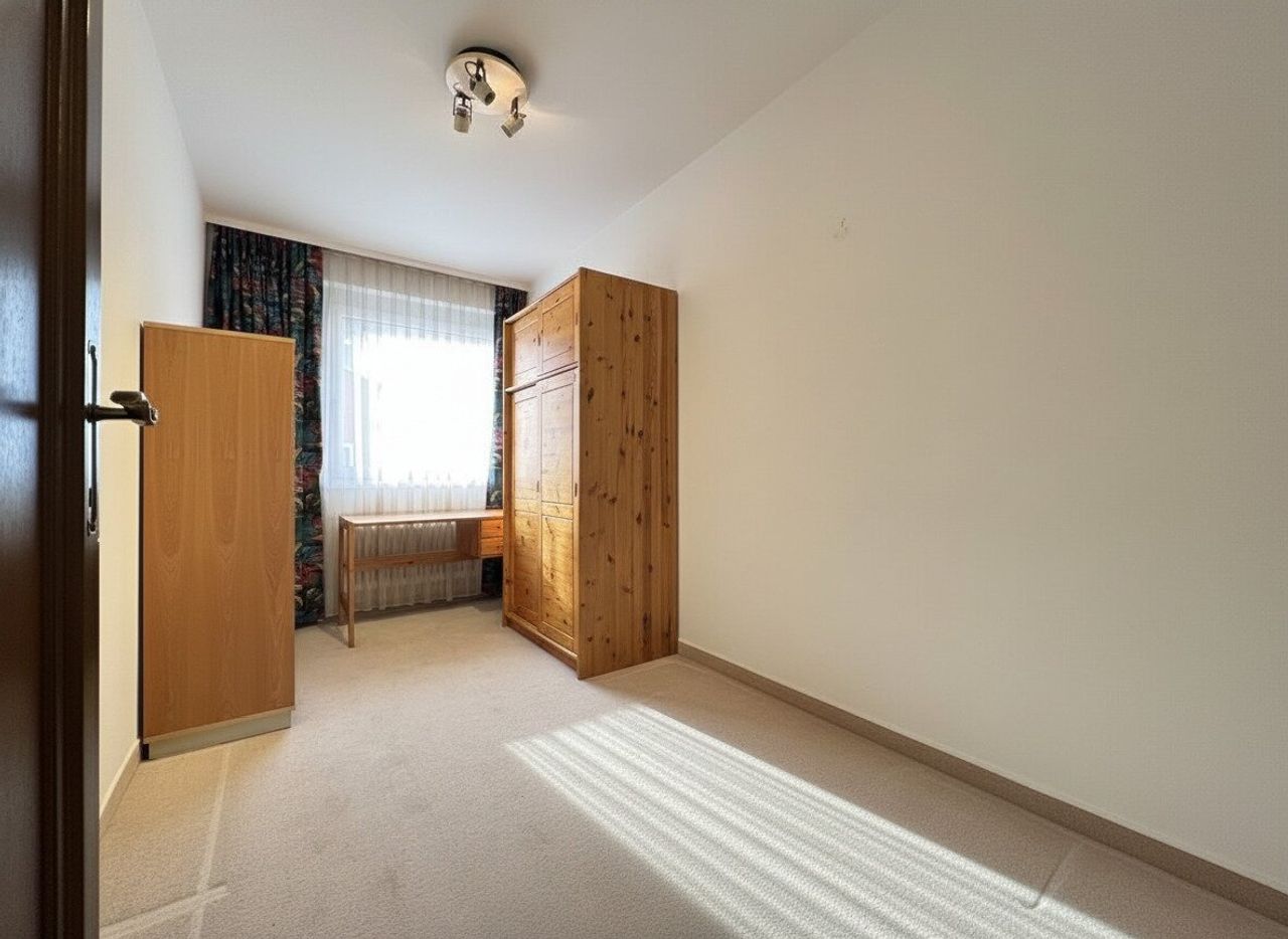 Der zentrale Eingangsbereich führt in eine großzügige Diele, von der aus sich die verschiedenen Wohn- und Schlafbereiche erschließen. Der helle Wohnbereich bildet das Herzstück der Wohnung und verfügt über zwei Zugänge zu einem Balkon. Insgesamt stehen mehrere Zimmer zur Verfügung, die flexibel als Schlafzimmer, Kinderzimmer, Gästezimmer oder Büro genutzt werden können.