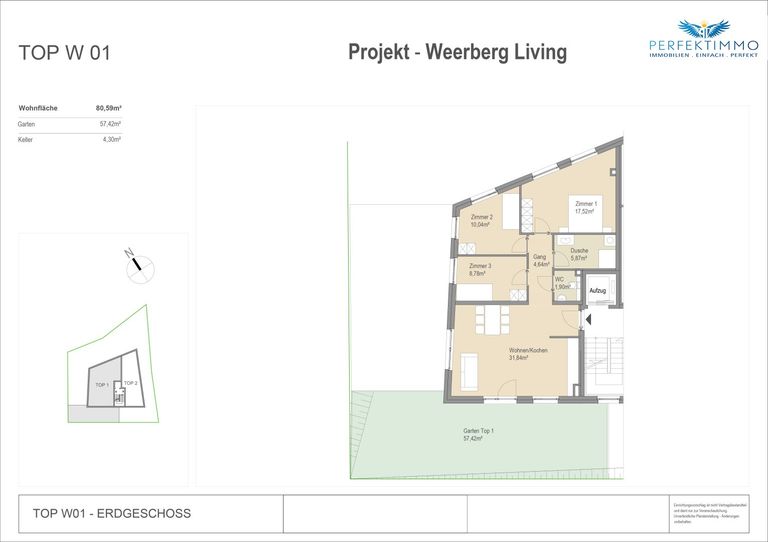 Der Personenaufzug ermöglicht bequemen Zugang zu allen Ebenen, und ein Kellerabteil mit ca. 4,30 m² bietet zusätzlichen Stauraum. Ein überdachter Abstellplatz mit etwa 27,13 m² steht bei Bedarf gegen Aufpreis zur Verfügung.