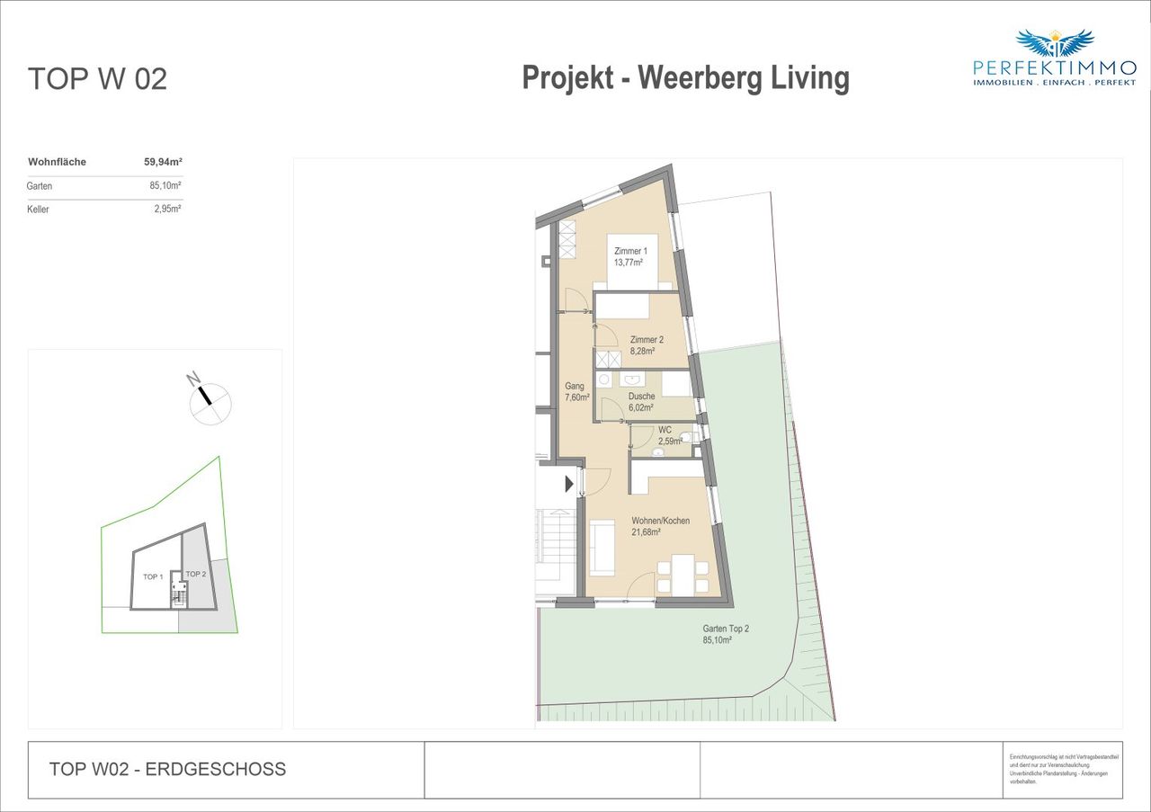 Diese moderne 3-Zimmer-Wohnung aus dem Jahr 2021 bietet mit rund 59,94 m² Wohnfläche ein ideales Zuhause für Paare oder kleine Familien, die Wert auf Qualität, Komfort und eine zeitgemäße Ausstattung legen. Die Immobilie befindet sich im Erdgeschoß und überzeugt durch ihren sehr guten Zustand sowie eine gelungene Raumaufteilung, die Funktionalität und Wohngefühl perfekt miteinander verbindet.