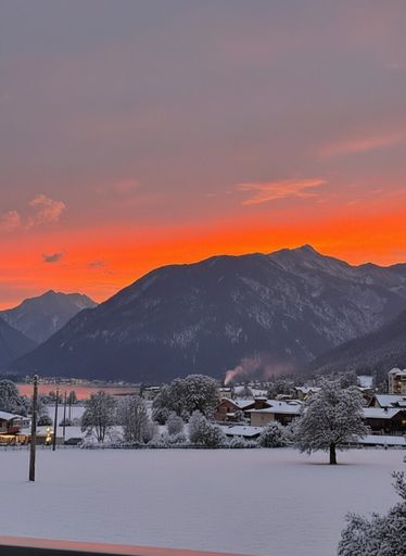 Ein besonderes Merkmal ist der Südwest-Balkon, der 2020 erneuert wurde und heute größer ist als die ursprünglich angegebenen 4,77 m². Hier genießen Sie Sonne bis in die Abendstunden und einen Blick auf den Achensee sowie die umliegende Bergwelt.