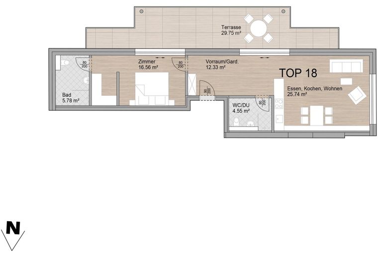 Jedes Appartement verfügt zudem über mindestens eine geräumige Terrasse mit reichlich Platz für eine Sitzgruppe.