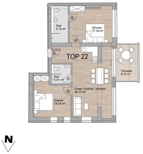 Jedes Appartement verfügt zudem über mindestens eine geräumige Terrasse mit reichlich Platz für eine Sitzgruppe.