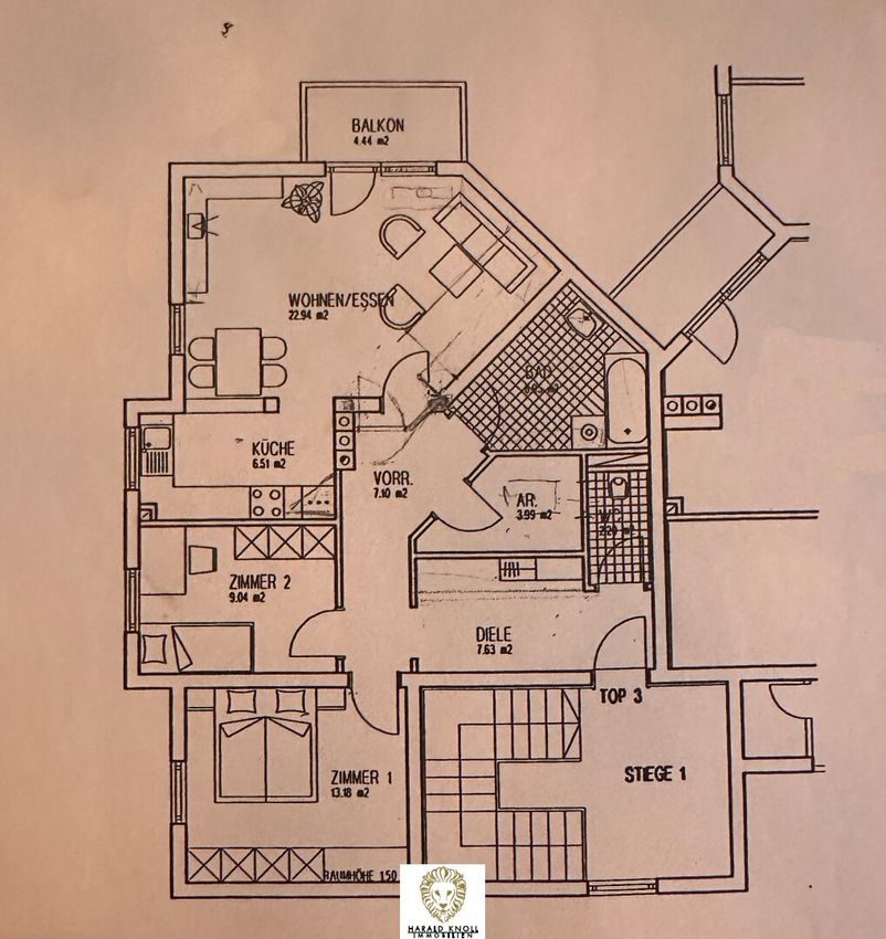 Die Wohnung verfügt über ein helles Wohnzimmer, zwei weitere Zimmer, eine Küche sowie ein Badezimmer mit Fenster und Badewanne und ein separates WC. Ein Balkon lädt zum Entspannen ein und erweitert den Wohnraum ins Freie. Zusätzlichen Stauraum bietet ein praktischer Abstellraum, während ein Tiefgaragenstellplatz für bequemes Parken sorgt.
