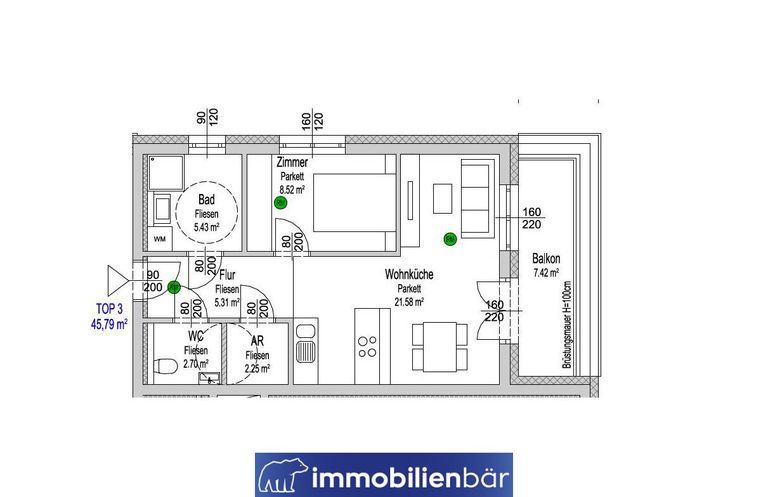 Gesamt: 45,79 m²
